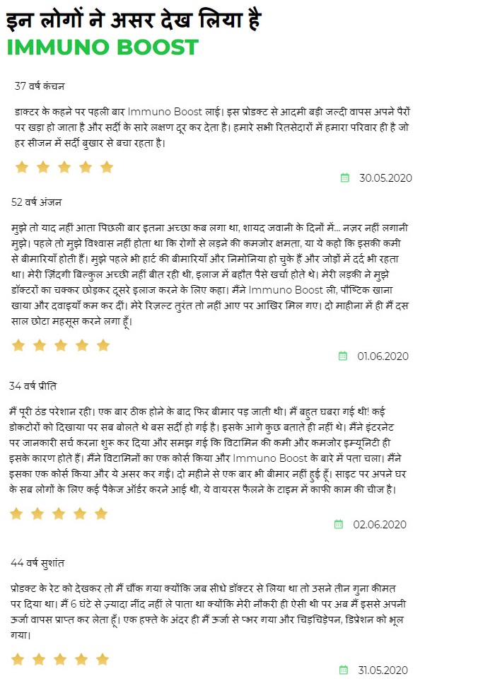 उपयोग Immuno Boost में योगदान देता है: